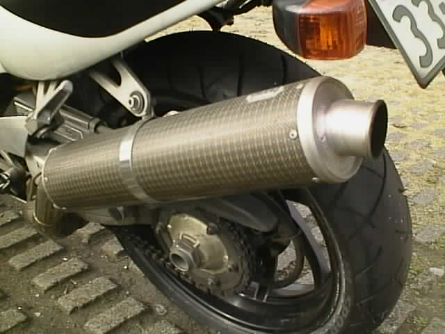 というのも、このマフラーは本体にシールや刻印が付けられていない状態で 入手したのです。入手当時、バイク雑誌等で確認した限りではヤマモトレー シングのものが一番似ていたのでした。もちろん、JMCA適合品です。