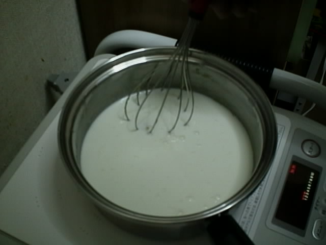 十分に空気を送り込んでやるとまろやかなホワイトソースができるらし いんですが、自分には違いが分かりません。