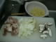 次に、具の準備に取り掛かります。まず、たまねぎを 薄切りにします。あまり厚みを残すと食べ辛くなるので、できるだけ薄め に切った方が良いでしょう。椎茸も同じく薄切りにしますが、こちらの方 はちょっと厚めにしておいた方が食感が残って良いと思います。