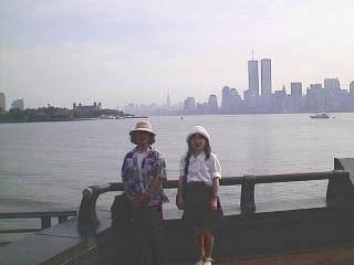 マンハッタンをバックに