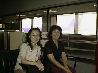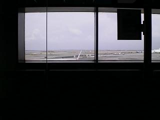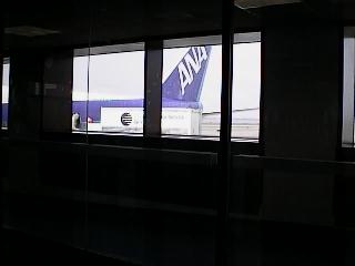 自分たちが座っていたベンチの向こう側では NH009 便を担当するスチュ ワーデスさんたちがブリーフィングを行なっていた。普通、ブリーフィン グは空港内の他の施設でやるものだと思っていたので、ちょっと驚いた。 まぁ、 ANA は国際的には JAL ほどメジャーではないので、日本と同じ ようにどこの空港にも自分たち専用のオフィスがあるとは限らないのだ ろう。