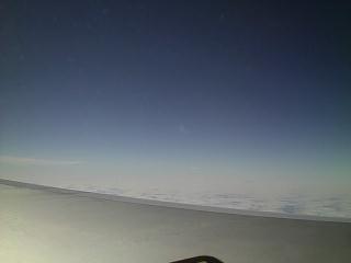 SKY MAP(左)と窓から見える風景(右、翼と空しか見えない)