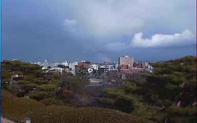画像データにすると非常に見にくいが、真中辺りにうっすらと虹が掛かってい
