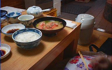 メインはイカの活造りなので、迷う心配はない。ただ、海老入り味噌汁が付く