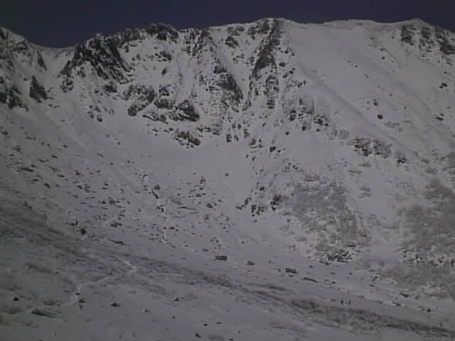 と、黒い物体が動いていた。よ〜く見てみると、人間だった。千畳敷カール