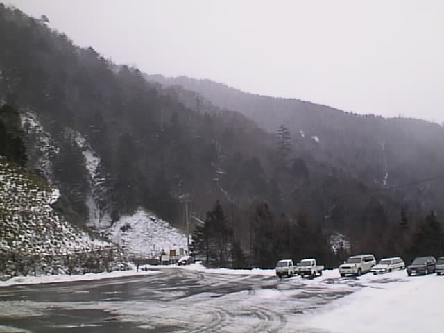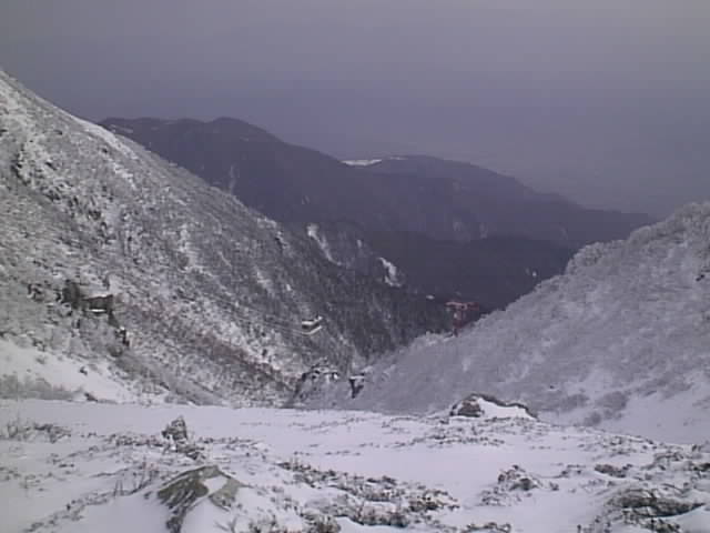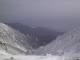 下に降りてくると、雪が降り始めていた。山頂の方を見てみると、黒い曇に覆