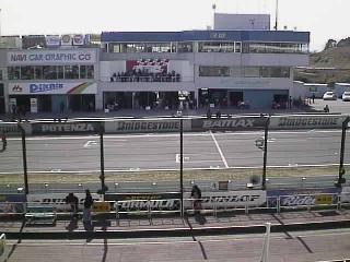 今回のデモ走行は、ピットロードの途中に開閉式のゲートからコースインし、